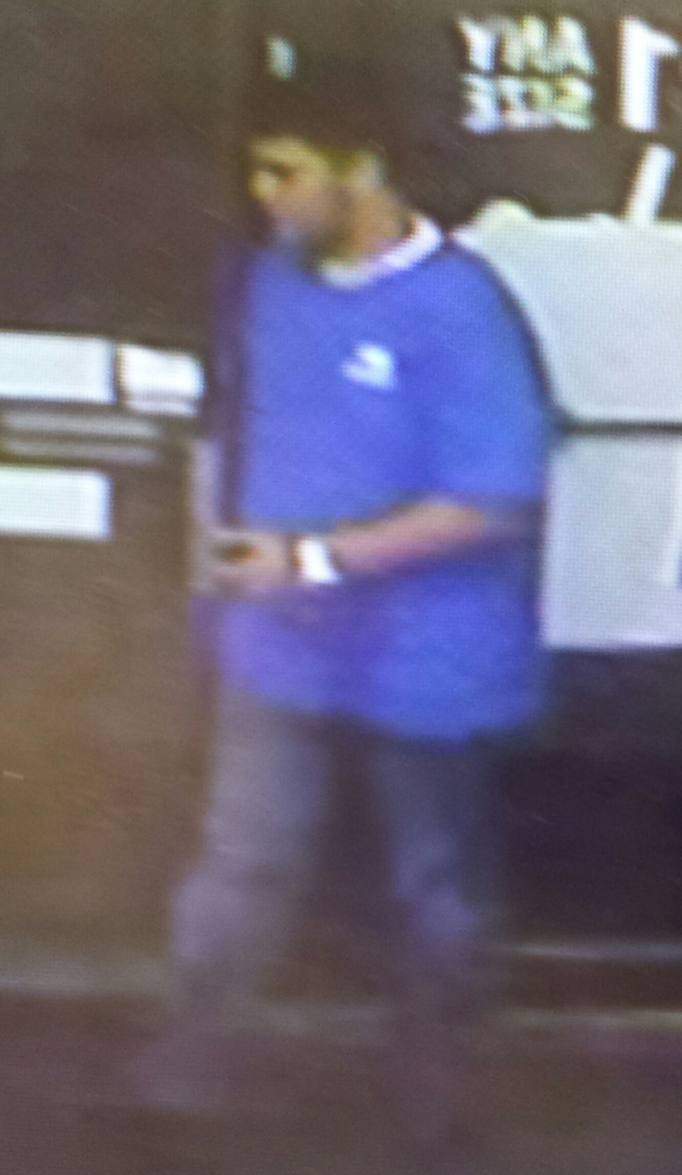 The Iowa City Police Department is asking for assistance in identifying the male pictured wearing a blue shirt. He is wanted for questioning regarding the theft of alcohol from Kum & Go, 955 Mormon Trek Blvd. on 07/29/2014.