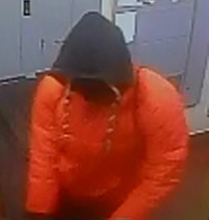 The Coralville Police Department is asking for assistance in identifying the male pictured in the photos below. He is wanted for questioning regarding a robbery from Wendy’s, 2804 Commerce Dr. on 12/29/2015 (C15004563). A lone black male entered the restaurant, pointed a handgun at employees before leaving with an undisclosed amount of money. The male is 30-40 years old, medium build, wearing black pants, an orange or red North Face coat, black gloves and boots, and wearing a dark colored mask. The male was carrying a neon green draw string bag.
