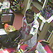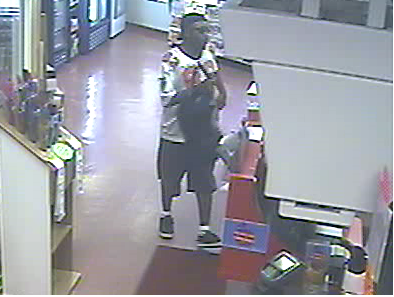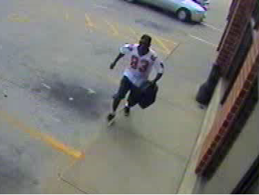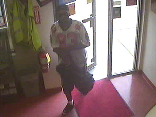 The Coralville Police Department is asking for assistance in identifying the male pictured in the photos below. He is wanted for questioning regarding a robbery from Tobacco Outlet, 2411 2nd St, on 06/14/2016 (C16001903). The subject is described as a black male, possibly 40’s in age, wearing a white Atlanta Falcons “Dwight 83” jersey.