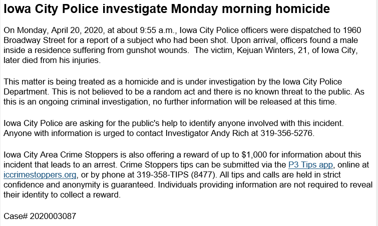 Posted by Iowa City Police on April 21, 2020 in Uncategorized